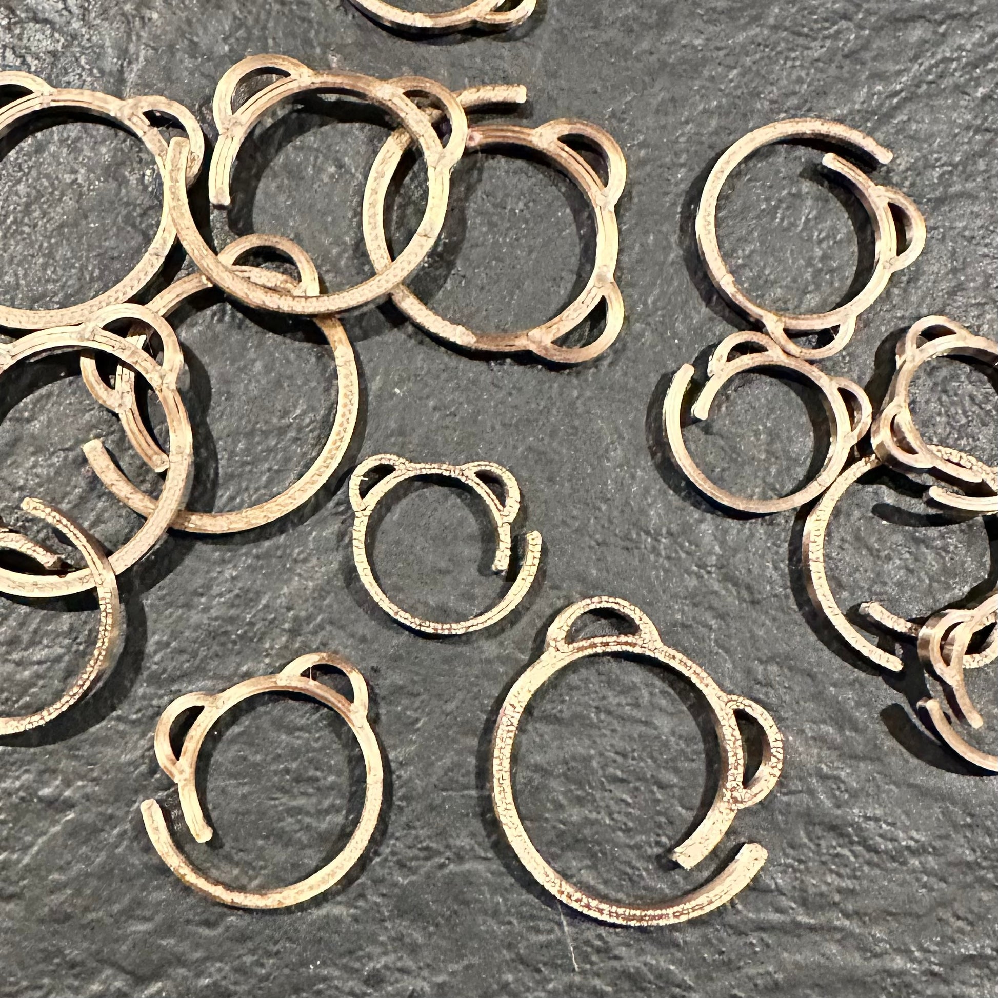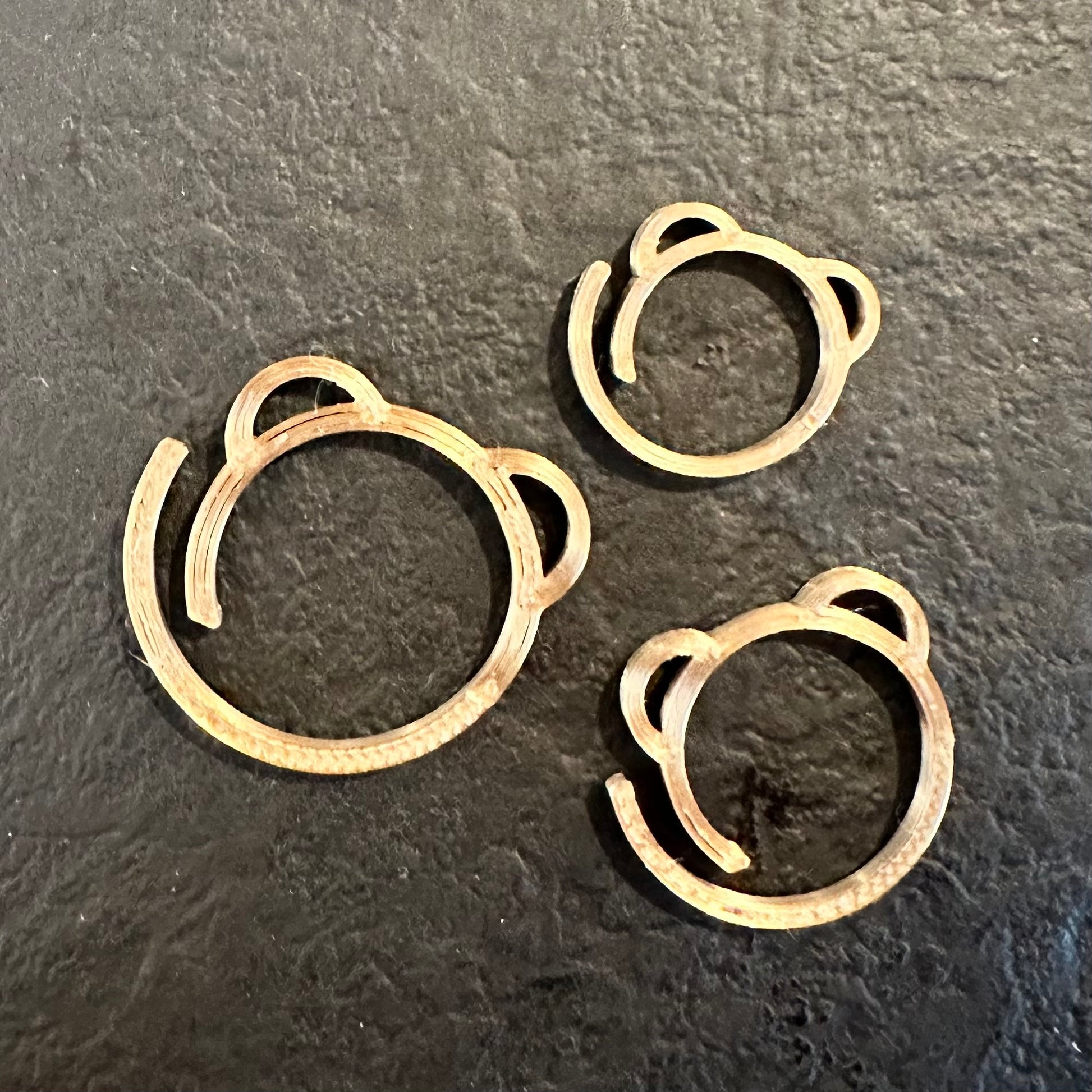 Gullfarget maskemarkører med bamseører. Det er 10 stk i hvert sett, selges i 3 ulike str. Stor (2,4x2,2x0,18cm), Medium (2x1,8x0,18cm) eller Liten (1,6x1,4x0,18cm).